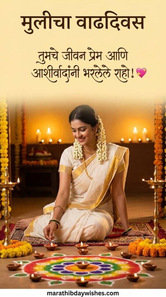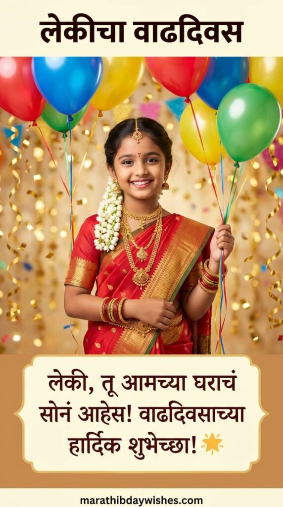 तिच्या वाढदिवसाला चमकदार फुग्यांच्या चमकांनी आणि मनापासून लिहिलेल्या मराठी मजकुराने उजळवा.