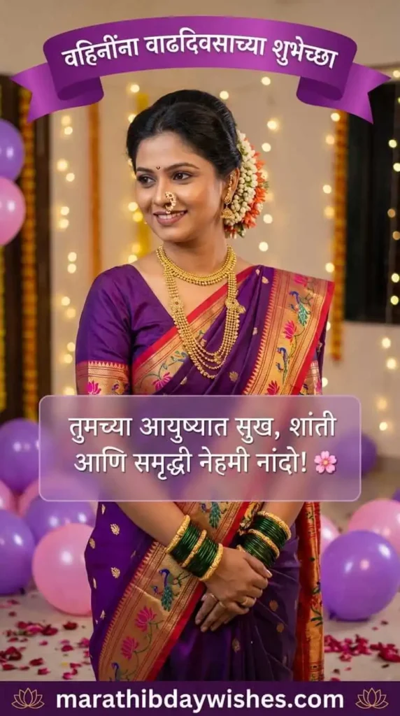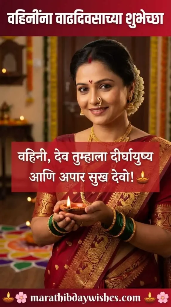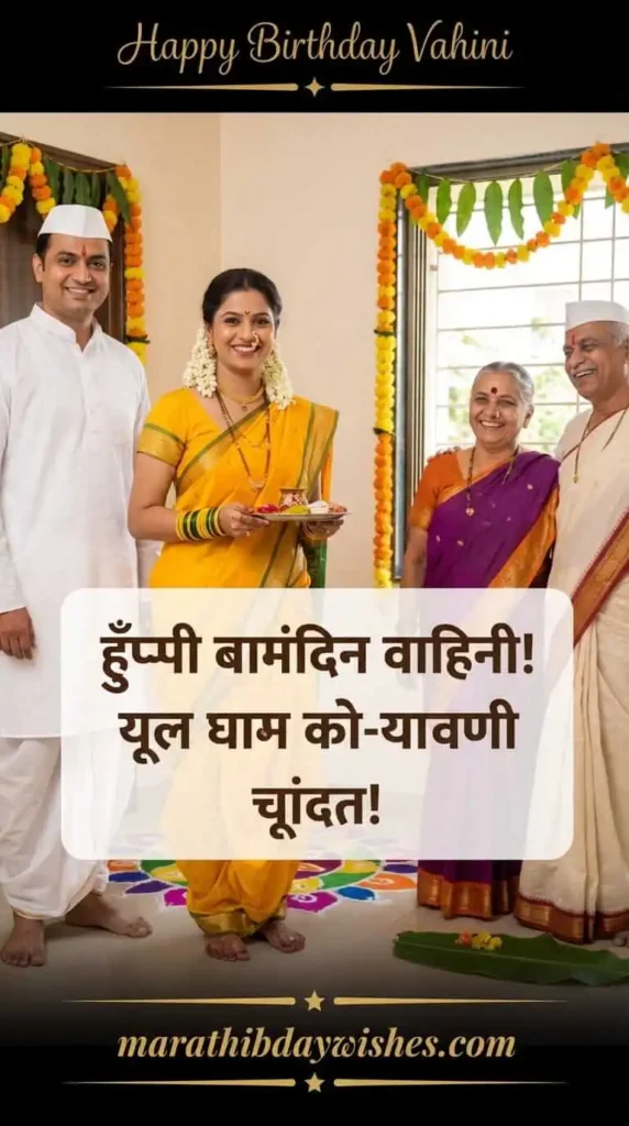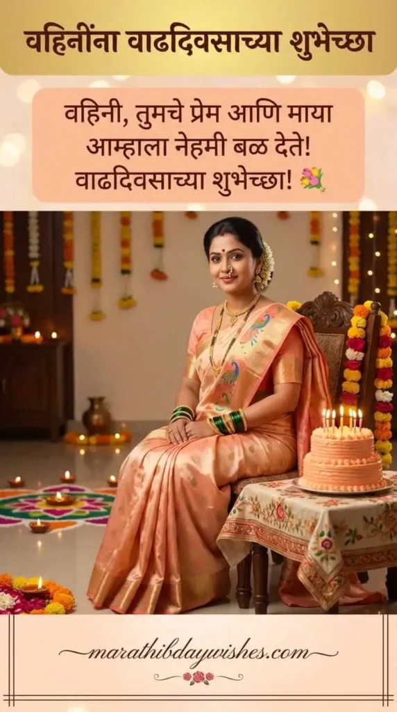 वहिनीसाठी उत्सवाची आशा आहे की उत्सव खोल कौतुकाने येईल. तुम्ही दिसल्यावर आव्हानात्मक काळही हलका होईल🎂. हा प्रसंग भव्य वाटो आणि तुमचे येणारे वर्ष अमर्याद आशीर्वादांनी भरलेले जावो.